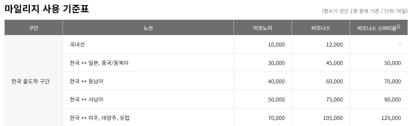 마일리지 사용 기준표와 이용 방법 (마일리지 공제표)