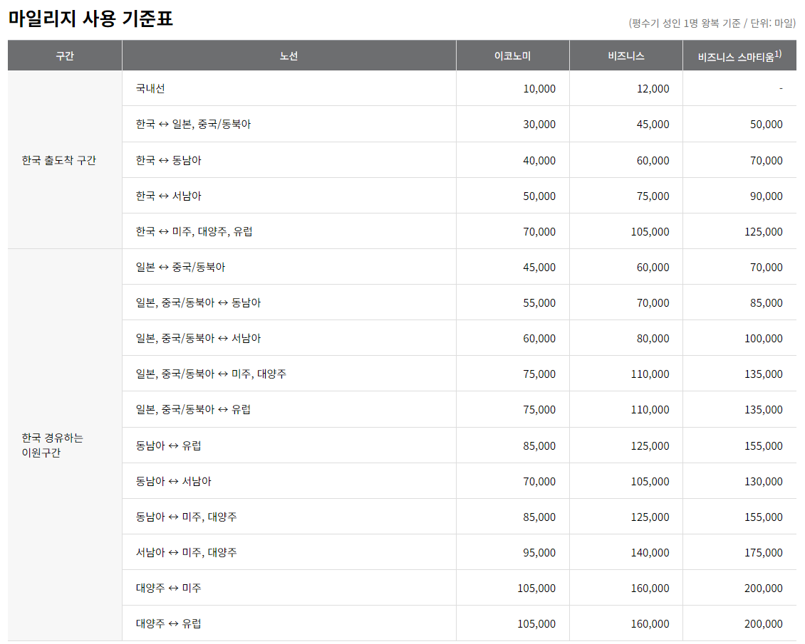 마일리지 항공권의 기본 원칙