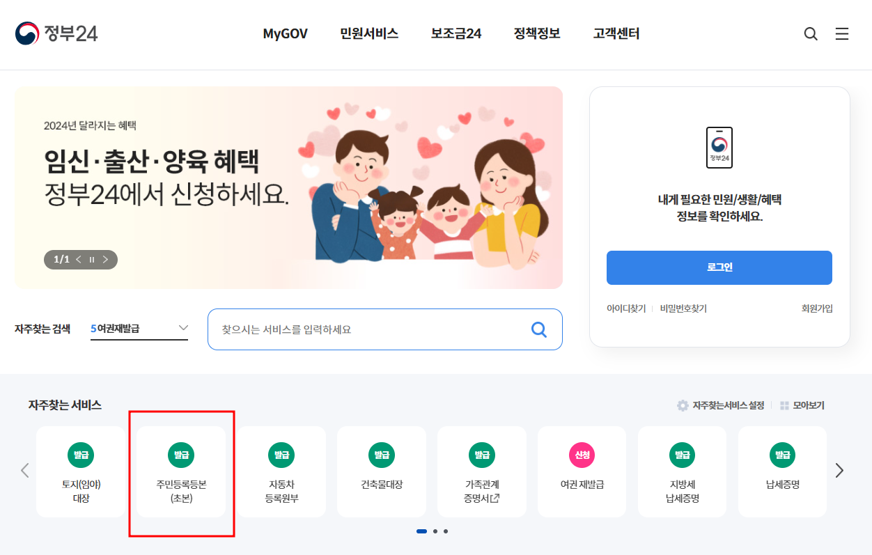 1. 정부24 홈페이지 또는 앱 접속