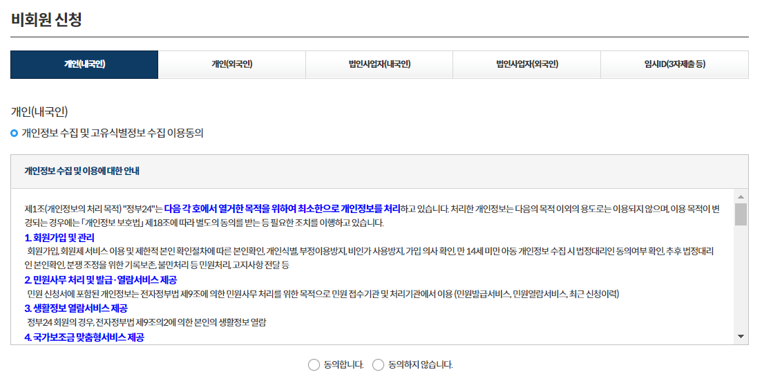 - 필요한 개인 정보(이름, 주민등록번호, 연락처 등)를 입력합니다. 여기서 정보 입력 후, 개인 정보 동의 및 인증 절차를 거치게 됩니다.