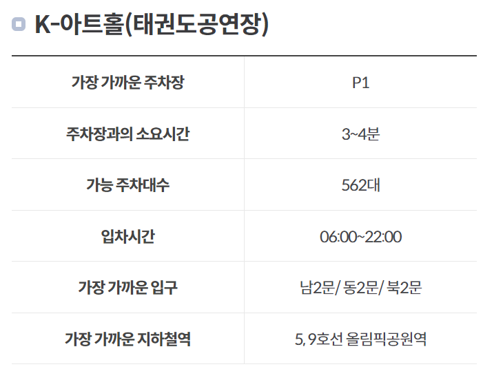- 공연 시간에 맞춰 도착하기: 공연 시작 1시간 전에는 주차장이 혼잡할 수 있으므로, 여유를 가지고 도착하시는 것이 좋습니다.