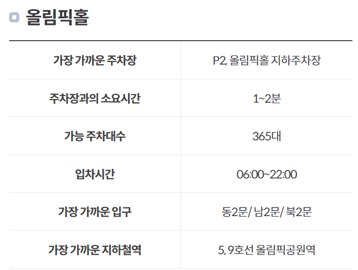 올림픽홀 주차장 정보