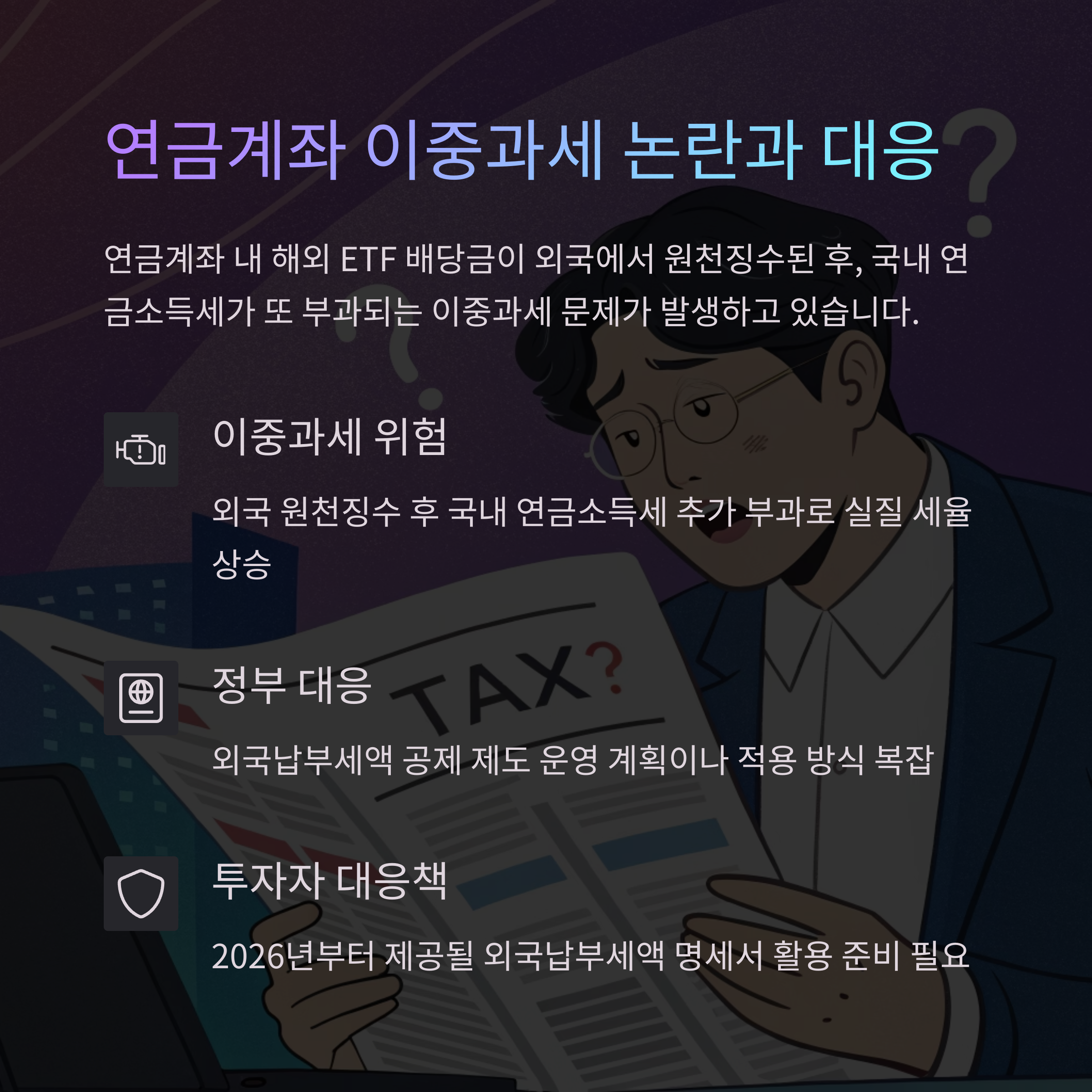 연금계좌 내 해외 ETF 배당금이 외국에서 원천징수된 후, 국내 연금소득세가 또 부과되는 사례가 발생하고 있습니다.