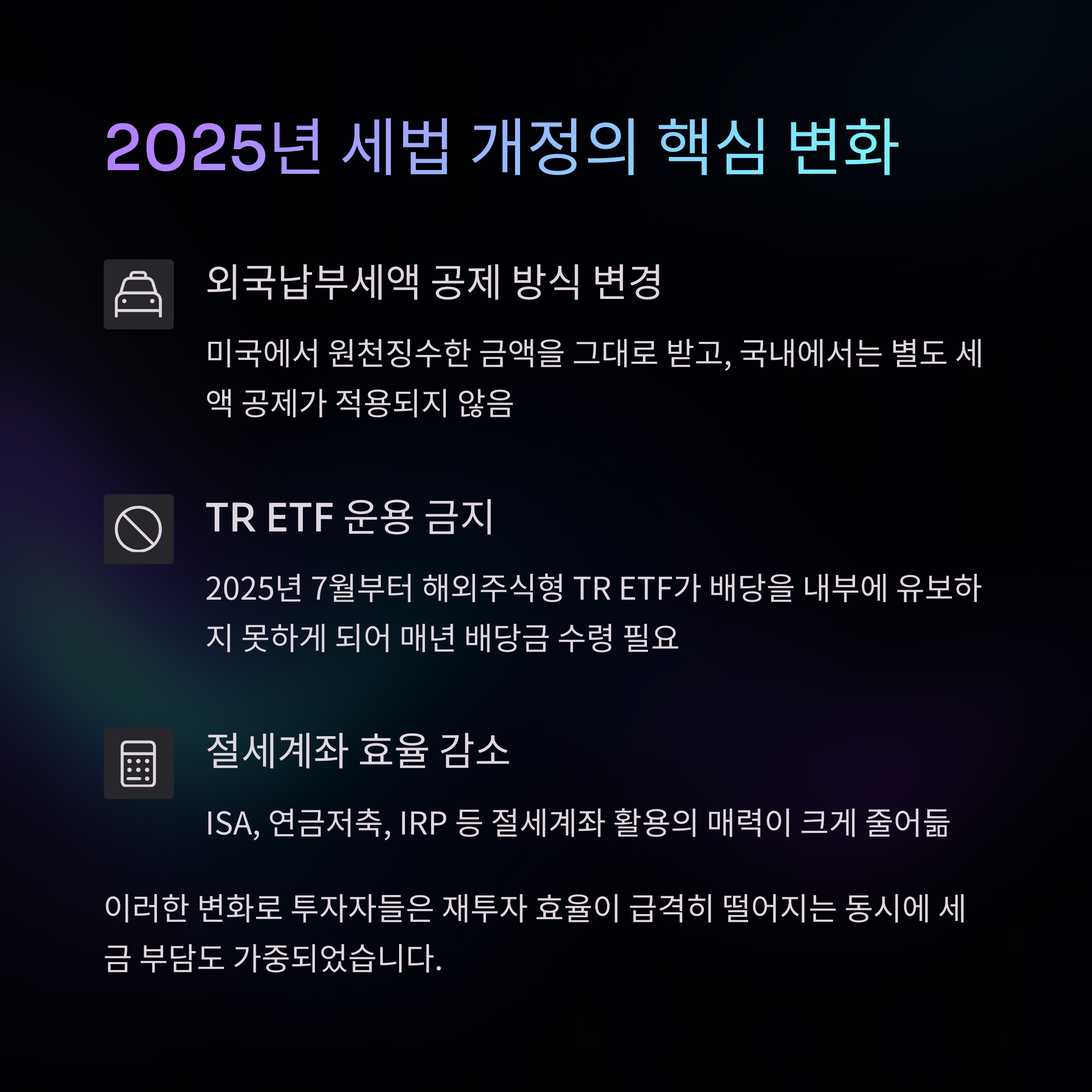 2025년 세제 변화는 해외 ETF 투자 패러다임을 근본적으로 바꿨습니다.