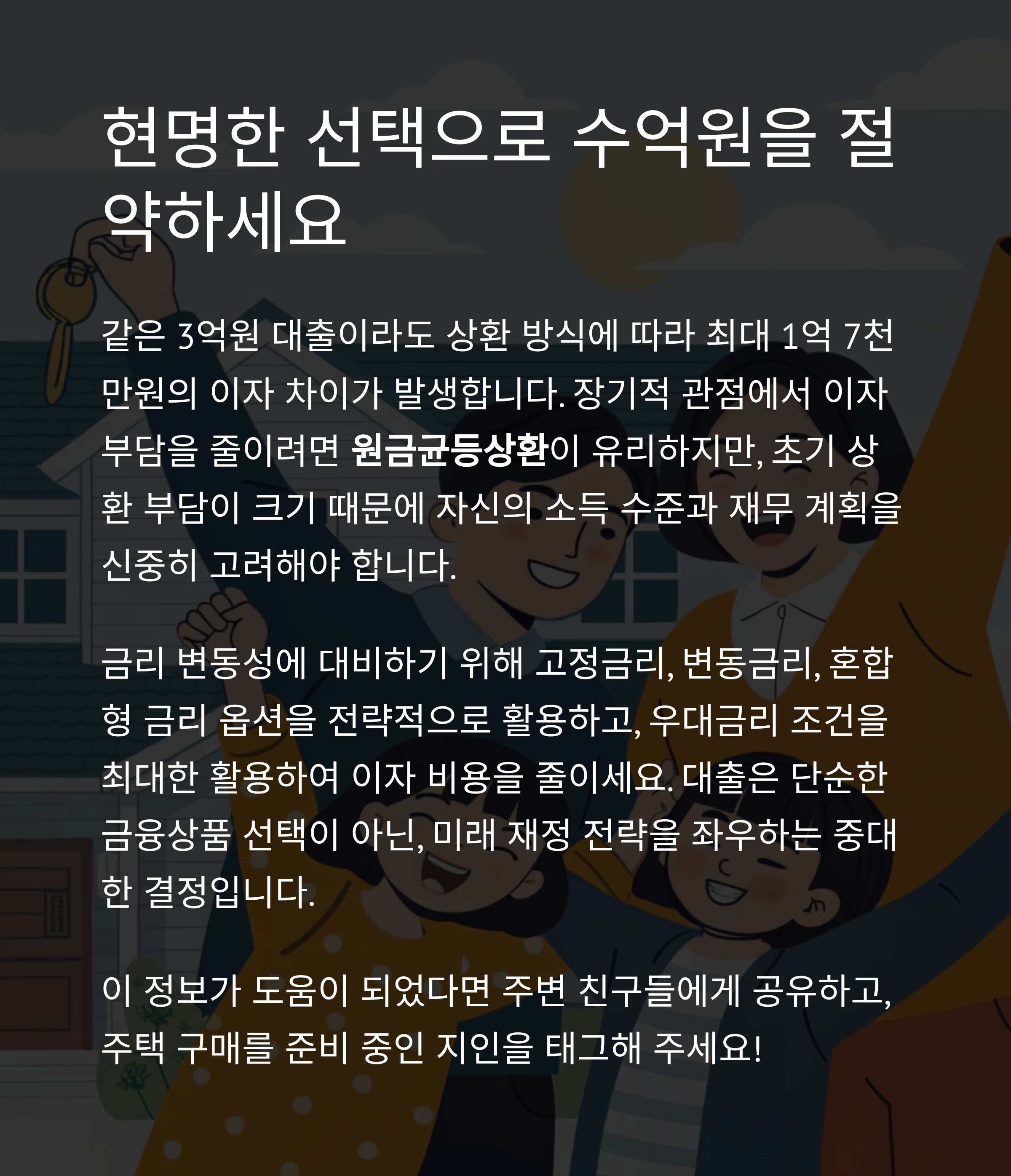 지금 바로 자신의 상황에 맞는 최적의 주택담보대출 상환 방식을 선택해 보세요!