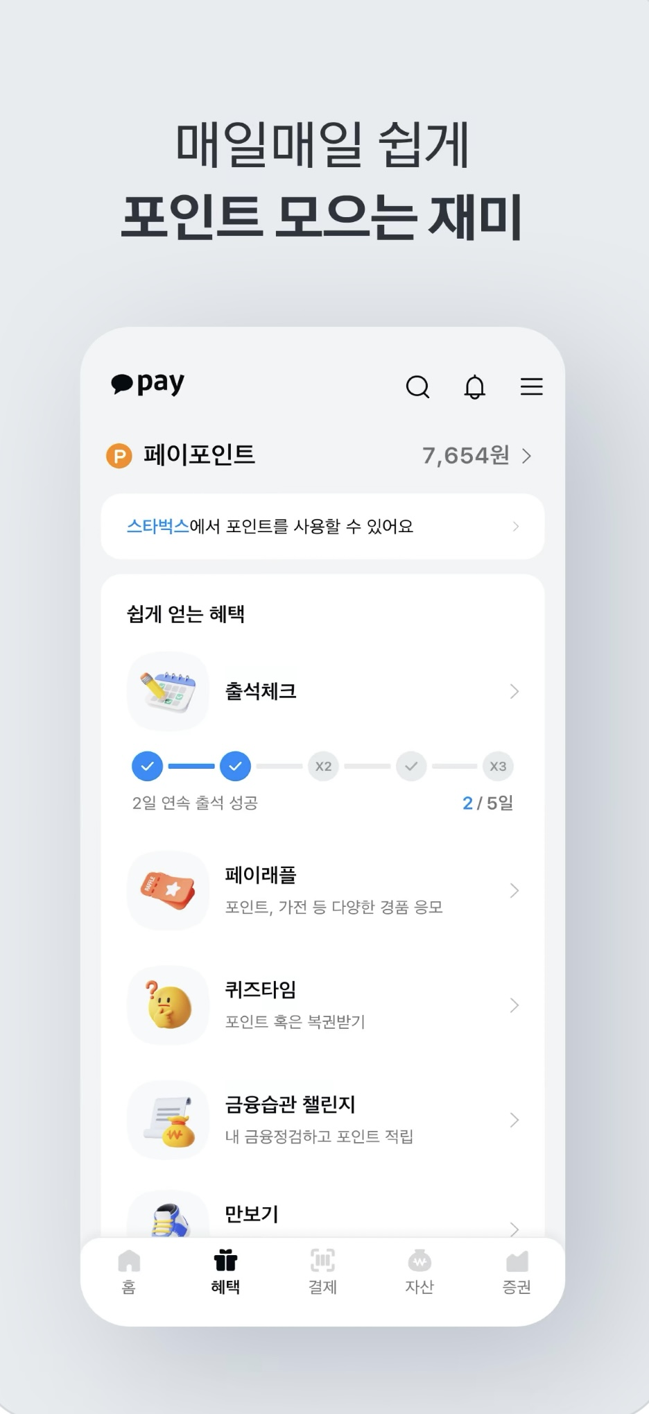 하루 2회, 일주일 기준으로 최소 14번 이상 포인트 적립 기회가 주어지므로